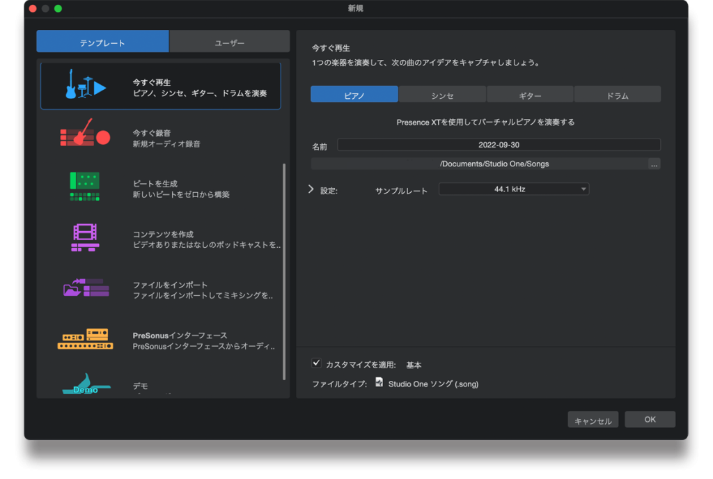 Studio Oneならば、レコーディング、ミキシング、マスタリング、ビートメイキング、そしてバーチャル・インストゥルメントでのパフォーマンスに欠かせないワークフローを、ワンクリックでスタートできます。