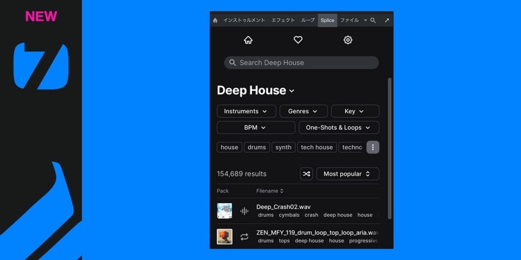 Spliceとの連携機能 音楽素材販売サイトSpliceとの強力な連携機能が凄すぎる!AI機能も搭載しリファレンス音源を入れるだけでレファレンスに合った音楽素材を選んで表示してくれるので、素材探しも悩まないです!凄すぎるーーー!